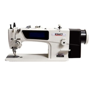 Uniwersalna automatyczna stebnówka tapicerska i kaletnicza KRAFT KF-3030-D4 wyposażona w energooszczędny silnik wbudowany bezpośrednio w głowicę maszyny (system Direct Drive). Takie rozwiązanie gwarantuje cichą pracę oraz niskie zużycie energii elektrycznej. Funkcje automatyczne: obcinanie nici, pozycjonowanie igły, rygiel początkowy i końcowy, podnoszenie stopki. Podwójny transport (dolny ząbkowy oraz górny – krocząca stopka) zapewnia idealne przesuwanie górnych i dolnych warstw zszywanych materiałów. Maszyna posiada czytelny panel operacyjny wbudowany w głowicę oraz podświetlenie LED przy igielnicy (z możliwością regulacji natężenia światła).