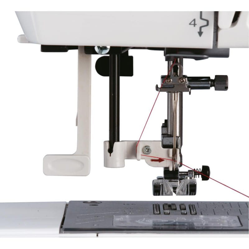 Bogato wyposażona i bardzo funkcjonalna maszyna z automatycznym obcinaniem nici. Jest to bardzo wygodna funkcja, gdyż nie potrzebne nam są podręczne nożyczki lub obcinaczki. Szczególnie ją doceniamy, gdy przeszywamy coś o dużej powierzchni i chcemy skończyć w środku materiału. Nie męczymy sie wtedy z wszechobecnymi nitkami. Maszyna ma chwytacz rotacyjny, nawlekacz nitki, płynną regulację tempa szycia oraz płynną regulację długości i szerokości ściegu. 60 programów ściegowych, a w tym 8 rodzajów dziurek to bardzo dobra opcja. Maszyna dodatkowo wyposażona jest w sztywną waliżkę oraz stoliczek powiększający.