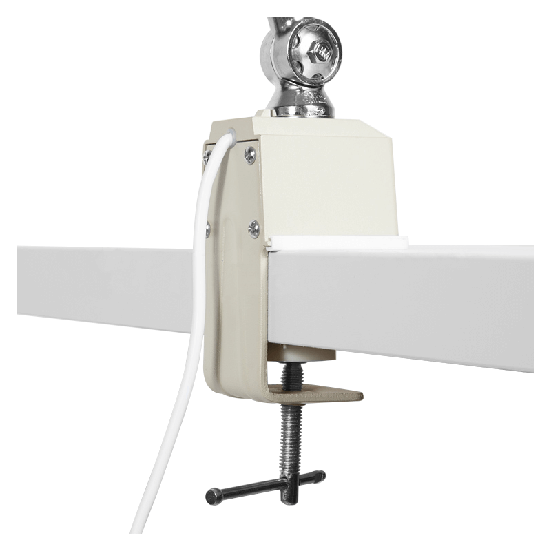 Lampa LED przykręcana do blatu maszyny. Posiada ramię elastyczne, co pozwala na manewrowaniem światłem w zakresie 360 stopni. Jest ono skonstruowane w taki sposób, żeby zapobiec wibracją lampy, podczas pracy maszyny. Napięcie 230V/50Hz, zasilanie z silnika maszyny lub sieci.