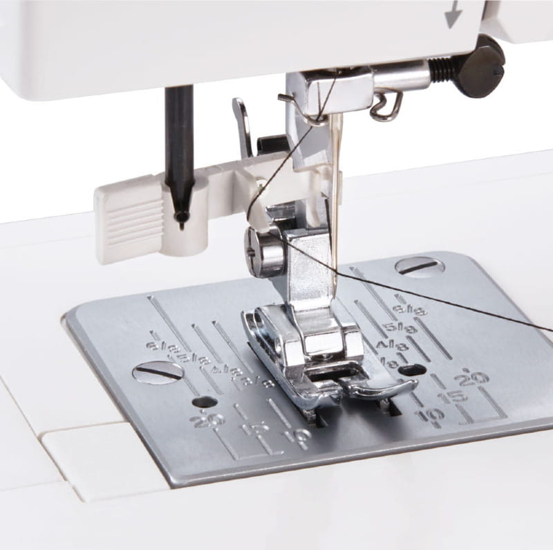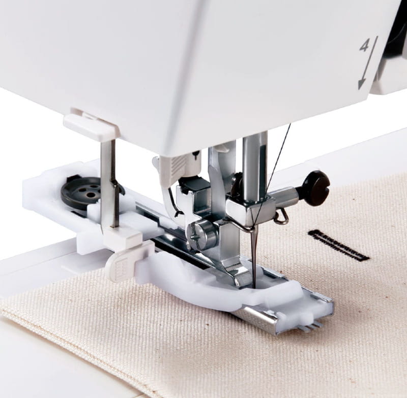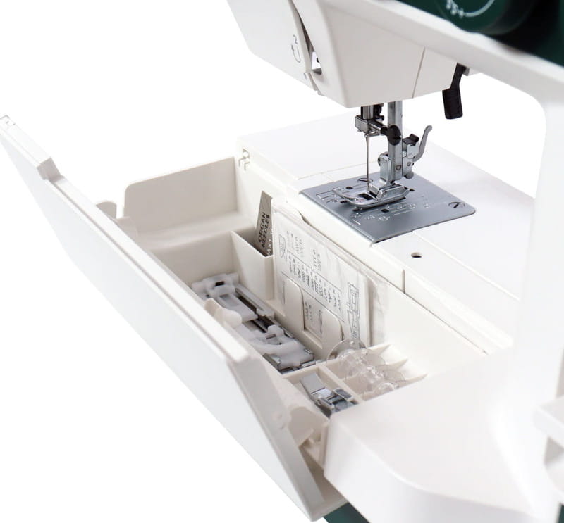 - Wbudowany nożyk do obcinania nici na obudowie maszyny