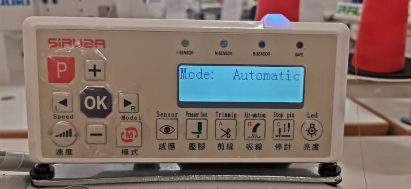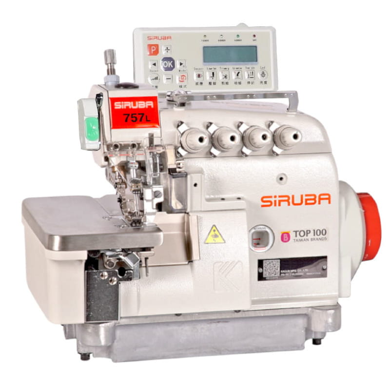 Owerlok 5-nitkowy SIRUBA 757L-516M3-35 (55)/ECA-U z automatycznym obcinaniem nici, podnoszeniem stopki oraz odsysaniem skrawków materiału i nici. Sterowanie za pomocą czytelnego panelu sterującego.