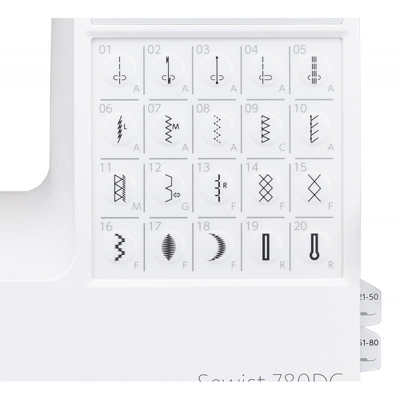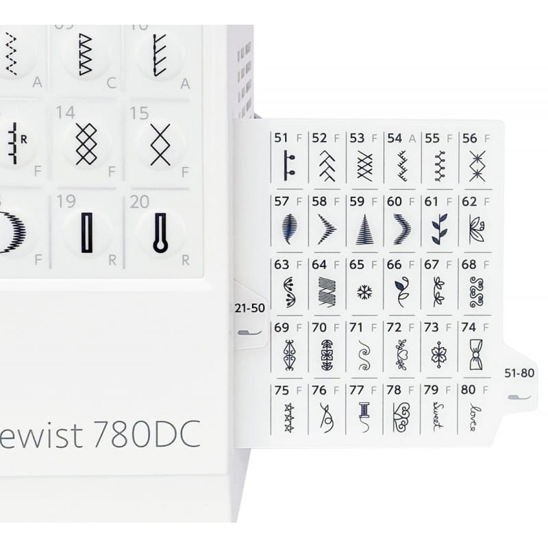 Janome 780DC posiada 80 programów ściegowych, m.in.: ścieg prosty, zygzak, elastyczny, kryty, ścieg owerlokowy, ściegi do naszywania aplikacji,ściegi dekoracyjne, a także 3 rodzaje automatycznego obszywania dziurek na dowolny wymiar guzika.